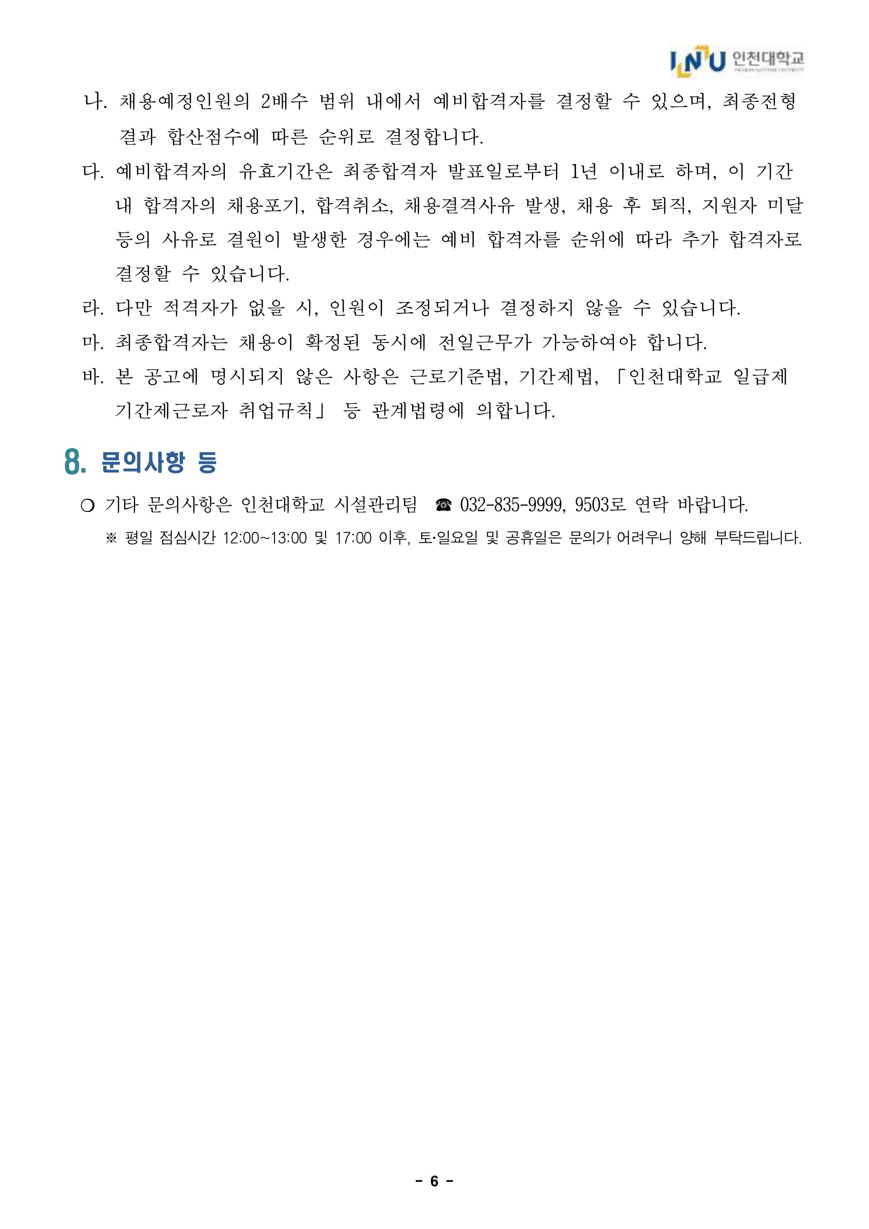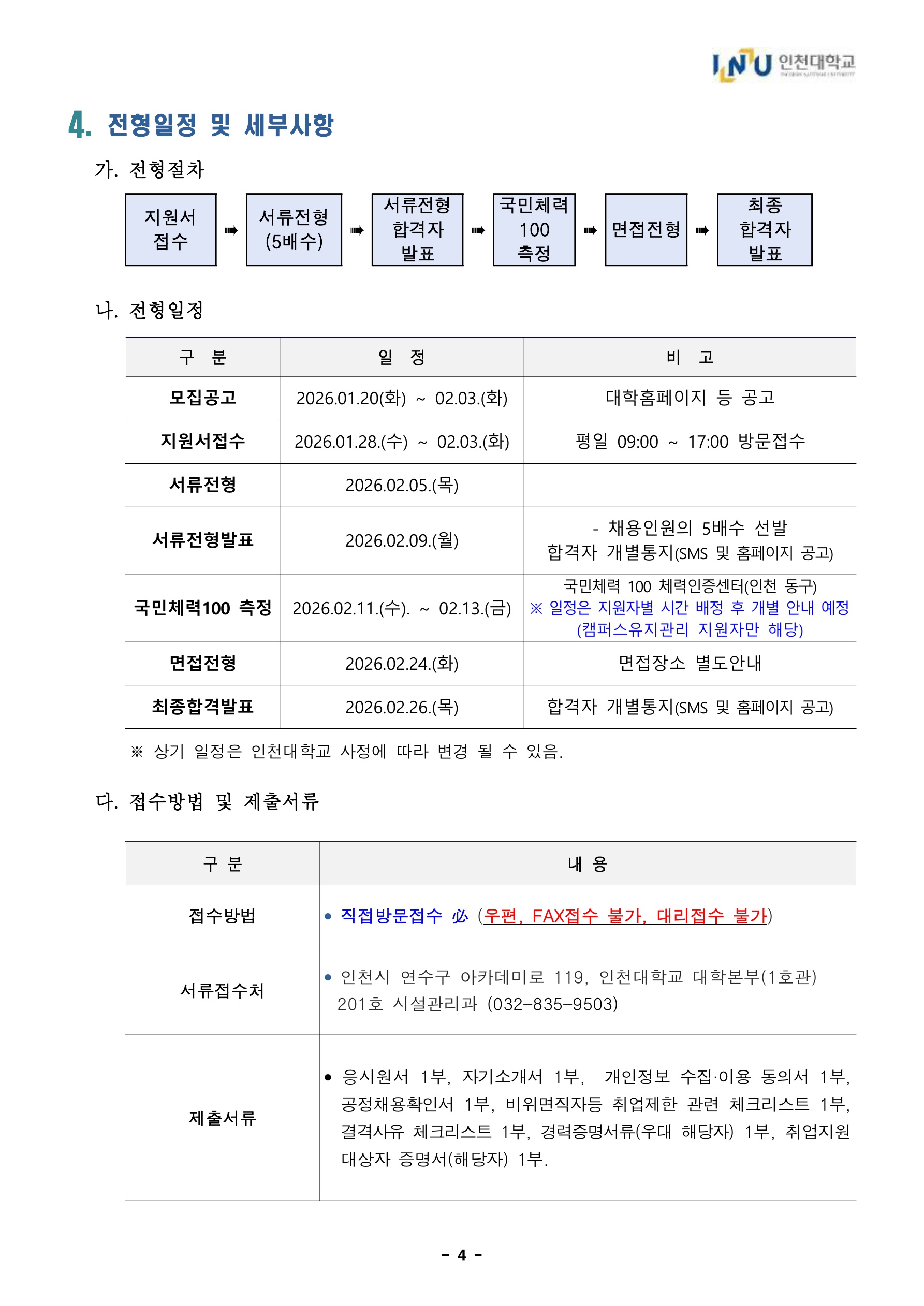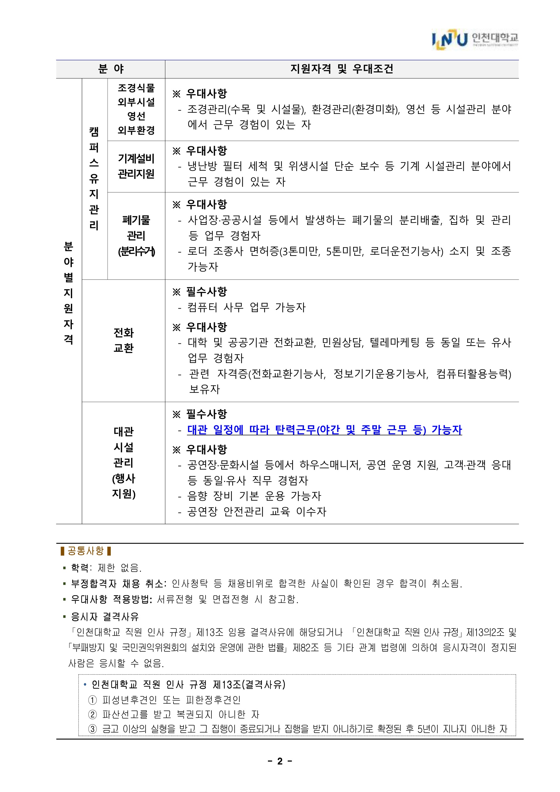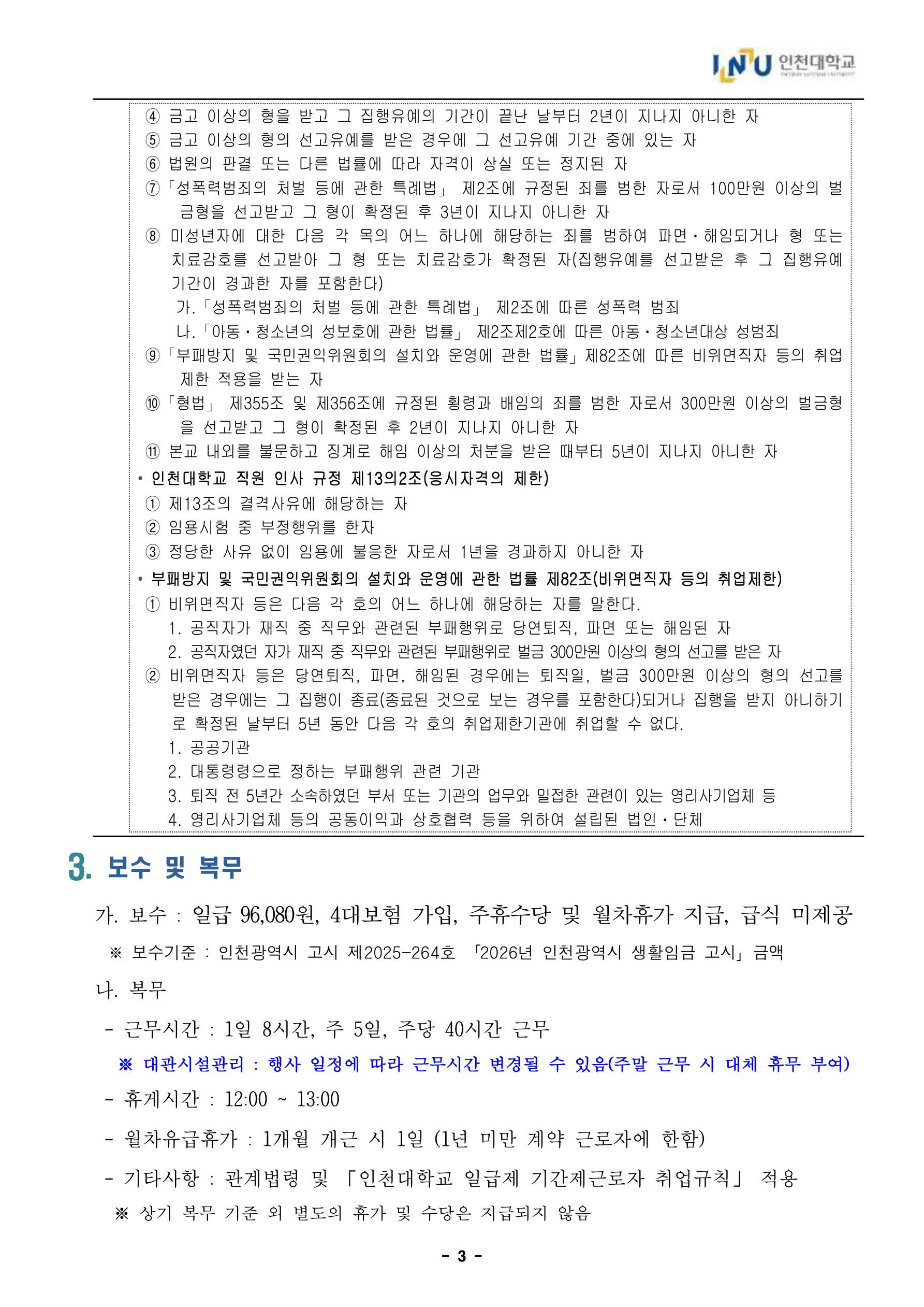2026년 인천대학교 일급제 기간제근로자 채용공고