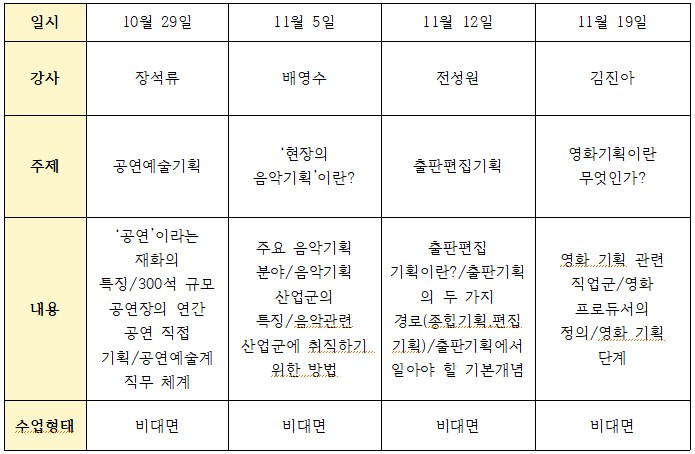 03. 2020학년도 2학기 문화예술 기획 특강