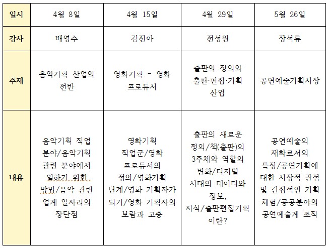 ◎ 주제: 문화예술 기획자 양성