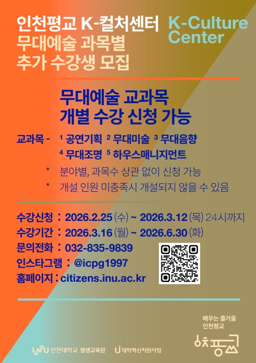 [인천평교 K-컬처센터] 무대예술 과목별 추가 수강생 모집 안내