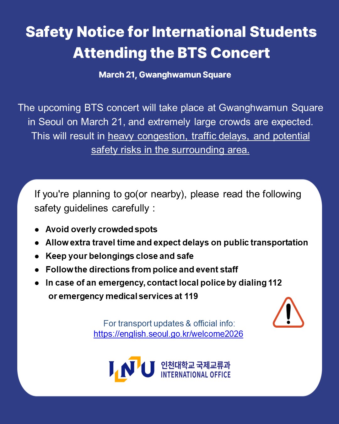 Safety Notice for International Students Attending the BTS concert