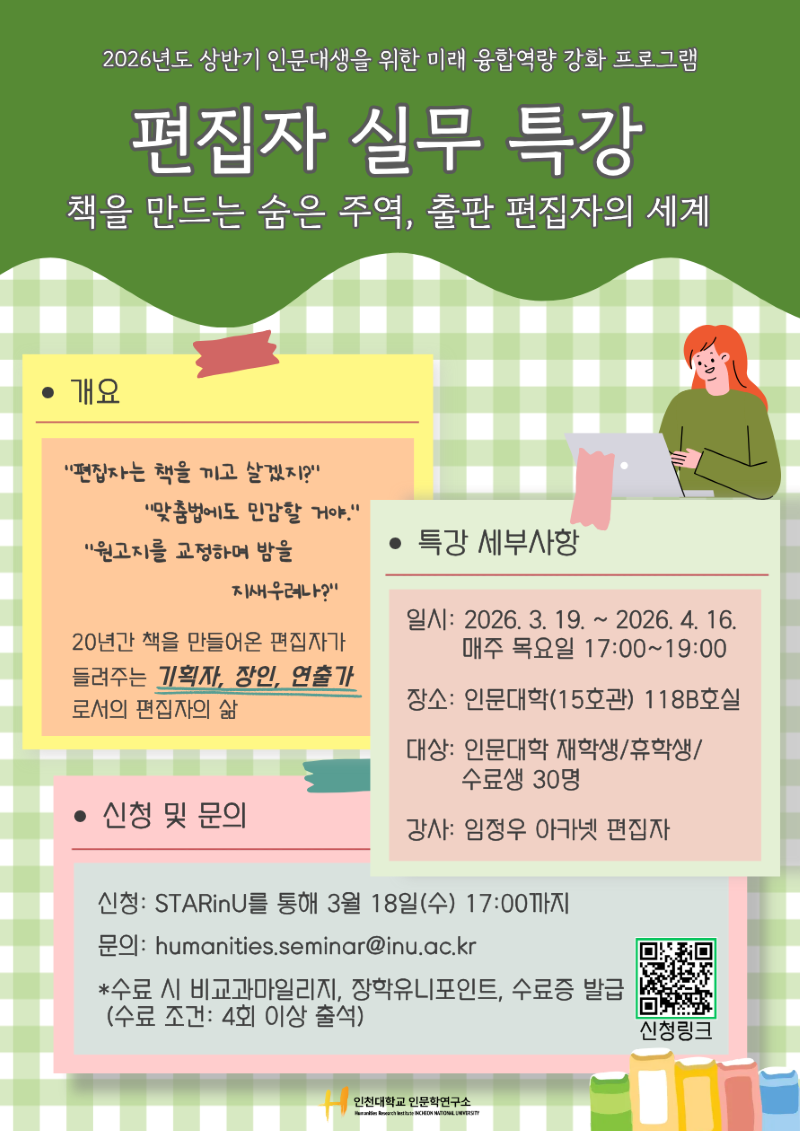 [안내] 2026년도 인문대생을 위한 편집자 실무 특강(~3/18 17시까지)