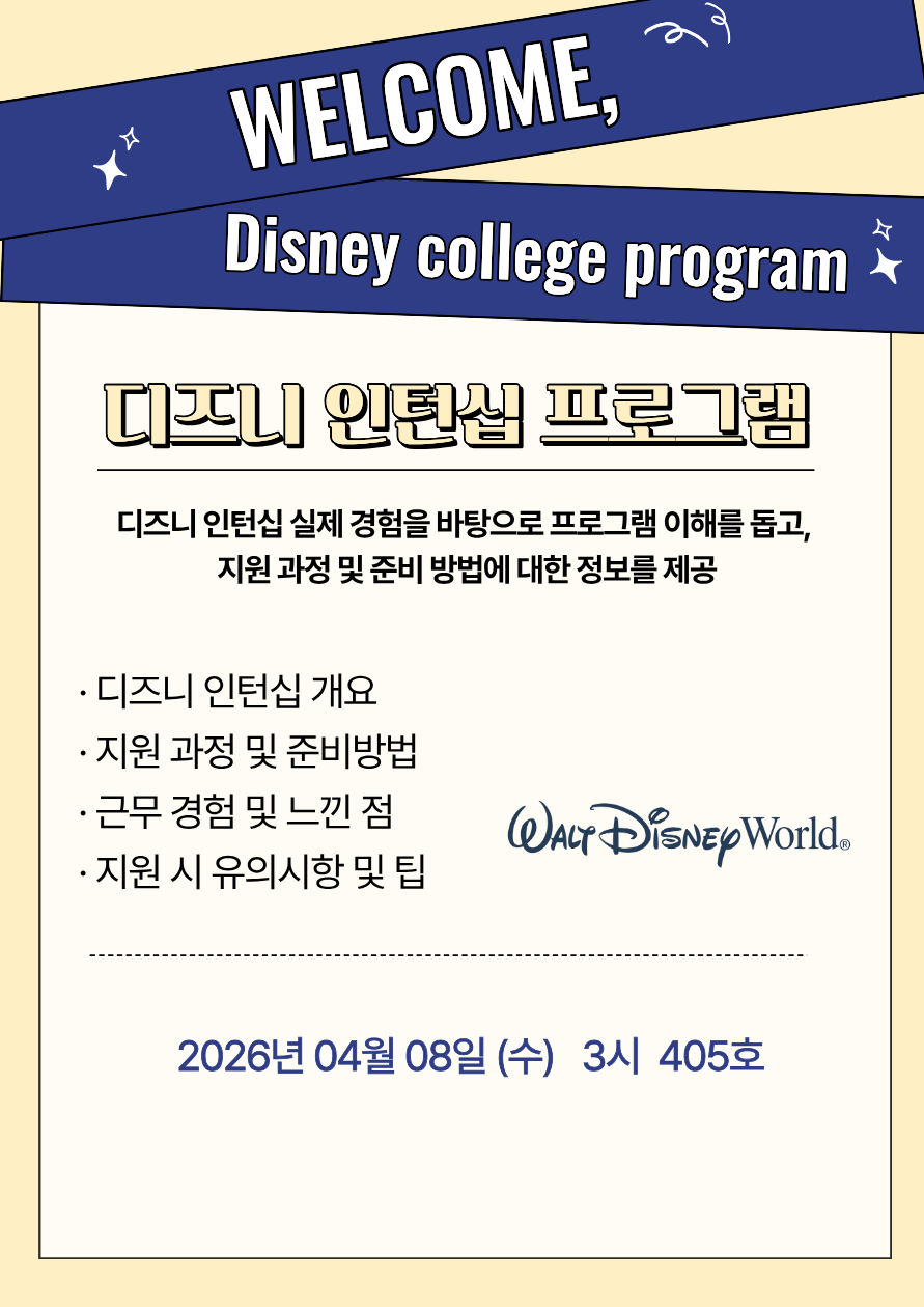 [안내] 디즈니 인턴십 프로그램 설명회 안내 (4월 8일(수) 오후 3시)